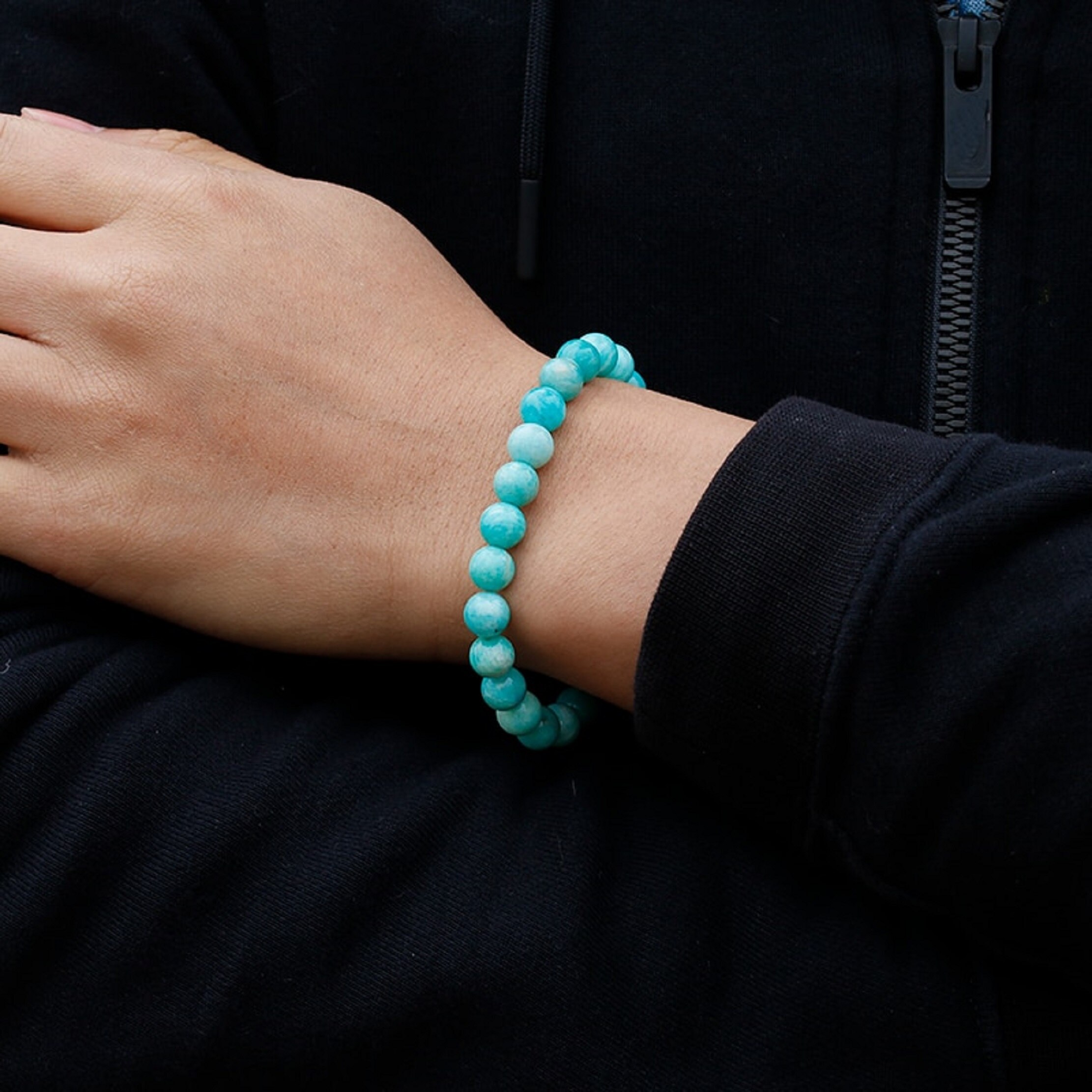 Natural Amazonite beads bracelet with healing & spiritual properties. It can increase your self-esteem and confidence and clear away any negative thoughts. Amazonite rose quartz bracelet benefits are both men & women which can make a strong bond relationship. Natural Amazonite beads Bracelets are suitable for the left hand (if you are looking for love, wealth, calm emotion). it can be healed automatically. Natural Amazonite jewelry is durable enough to wear on a regular basis. Men Women Amazonite Stone Bracelet Throat Chakra Vastu Expert Heart Chakra Natural Crystal Energy Gemstone. Amazonite Bracelet Meanings are helped to harmonize apparently different motivations and interests by bringing the truth to light without emotionality. natural amazonite beads bracelet can help us to improve positive thought for everybody who has negative energy near them.