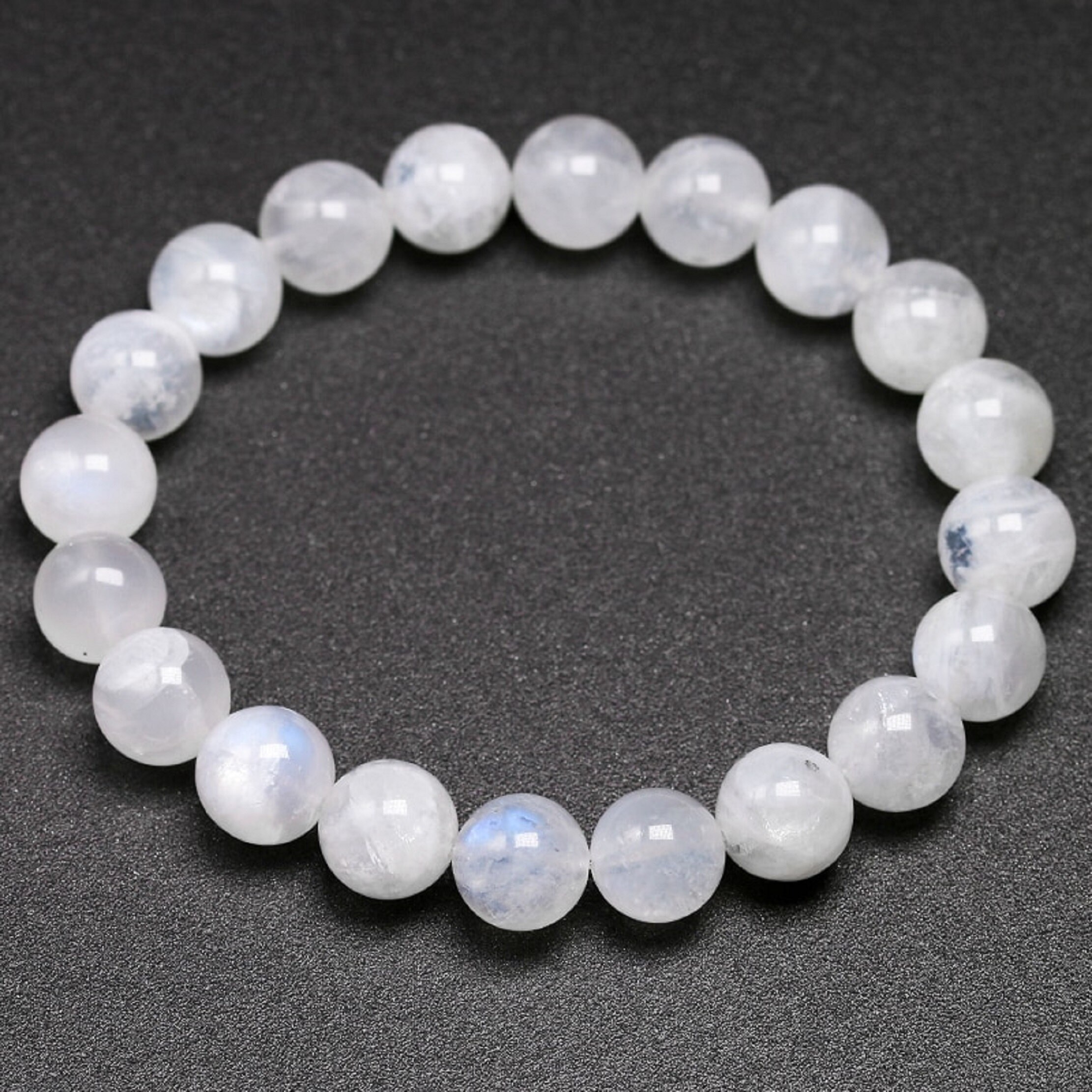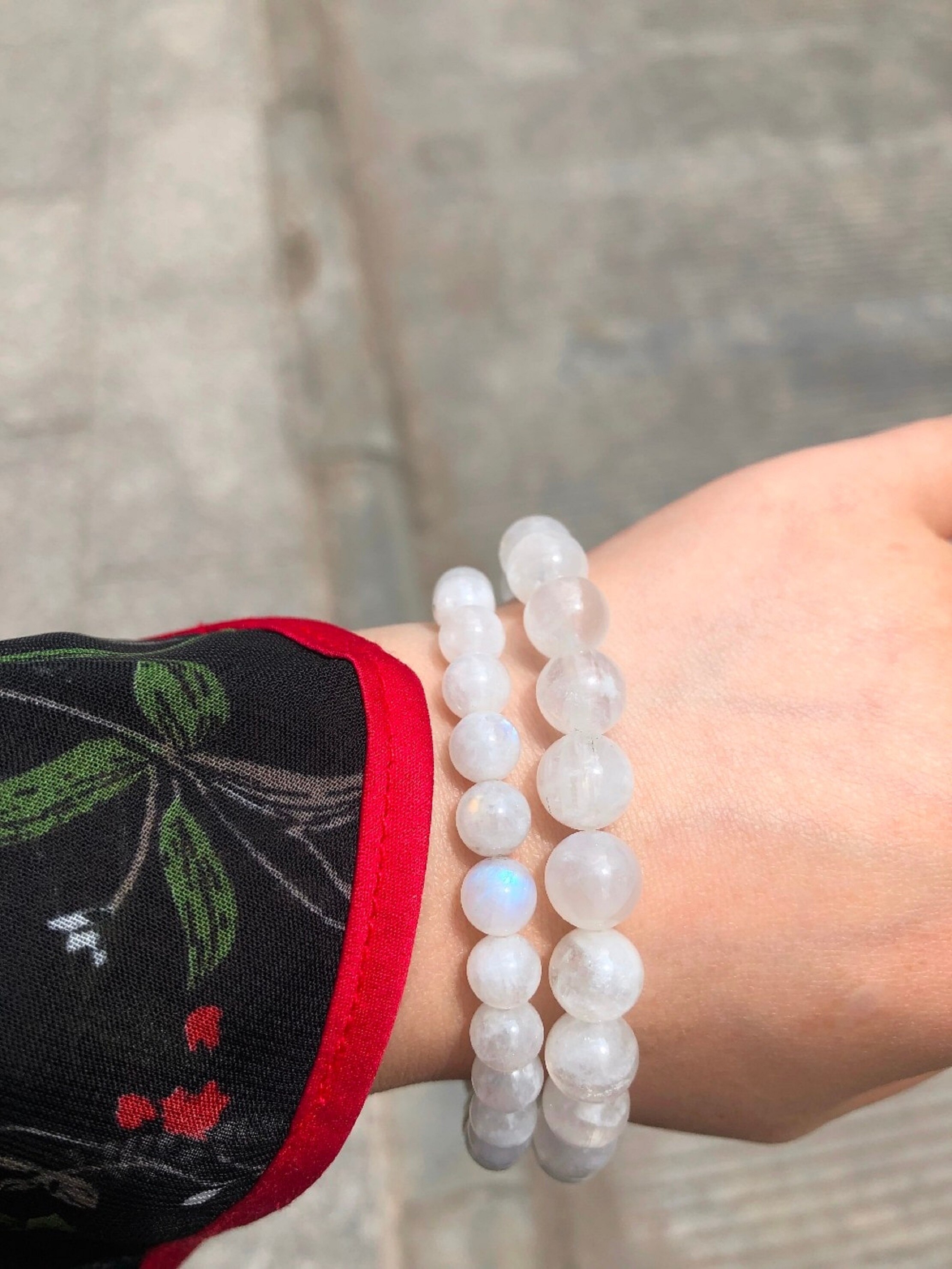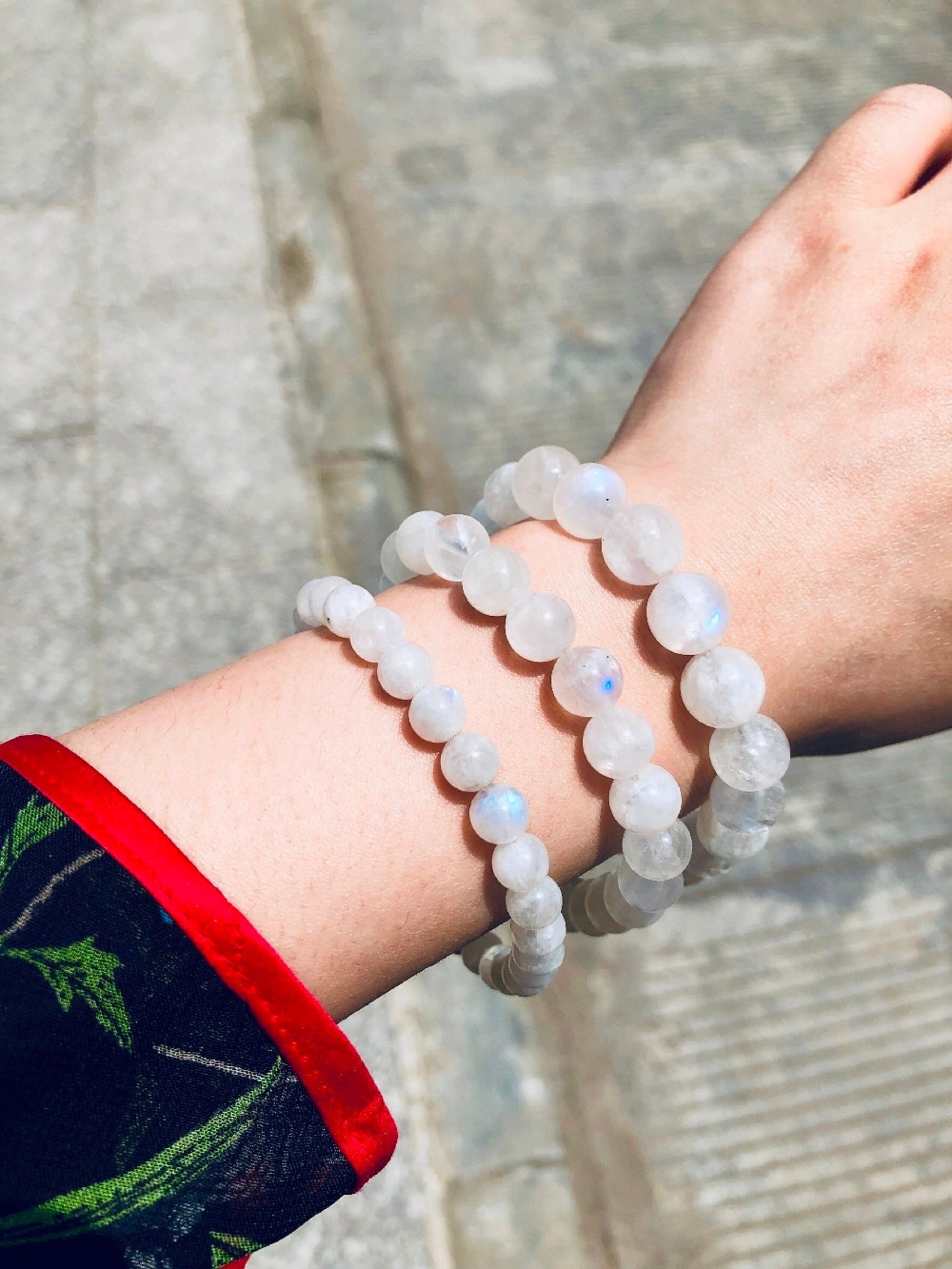 Rainbow moonstone crystal is thought to bring balance, harmony, and hope while enhancing creativity, compassion, endurance, and inner confidence. Rainbow moonstone is believed to help strengthen intuition and psychic perception, especially offering us visions of things that aren't immediately obvious. these are the meaning and properties of rainbow moonstone beads bracelet. Rainbow Moonstone's energies activate and align all our chakras to allow energy to flow freely. It's a very soothing stone with outputting vibrations full of calming and relaxing energy. these are the benefits of rainbow moonstone beads bracelet.